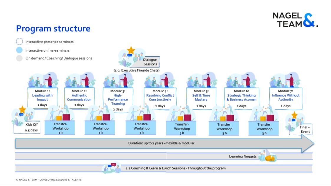 We develop our tailor-made in-house programs in close alignment with your strategic goals – in direct dialogue with your HR team.